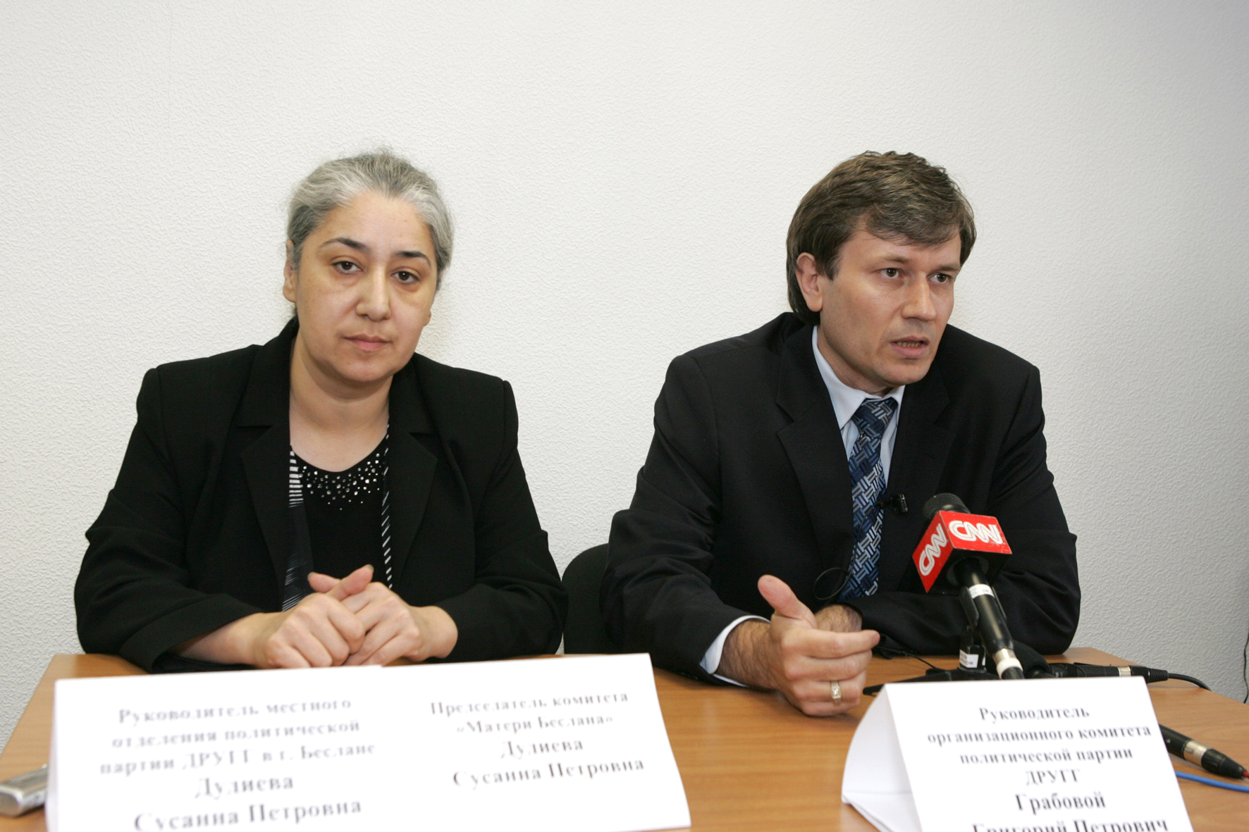 Председатель комитета «Матери Беслана» Дудиева Сусанна Петровна и Руководитель организационного комитета политической партии ДРУГГ Грабовой Григорий Петрович